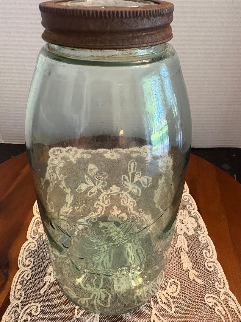 Antique Hand-Blown Ball Mason Jar 1900 1910 Tinted Glass Half Gallon