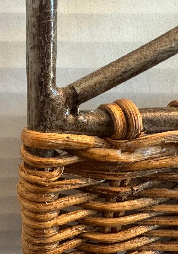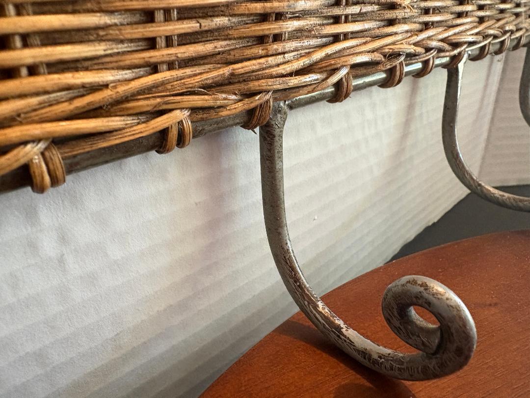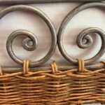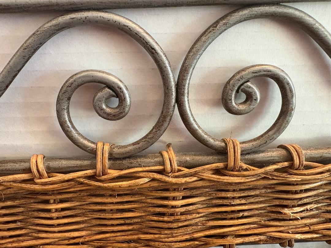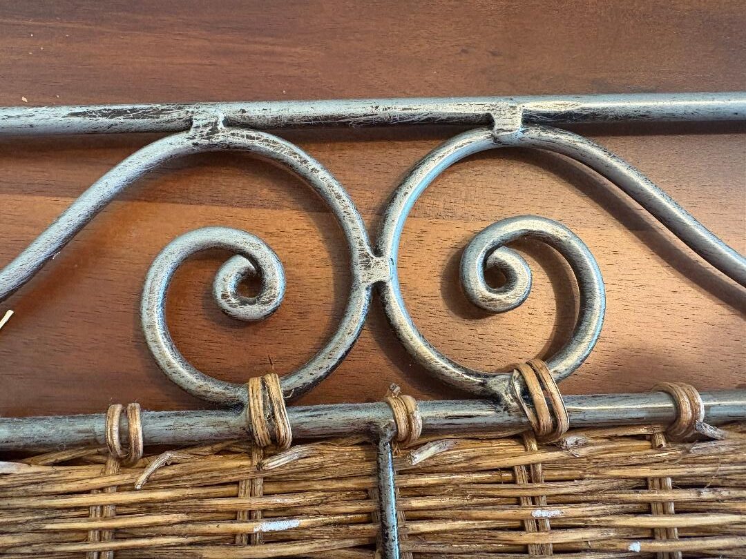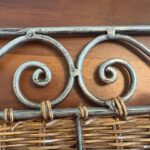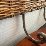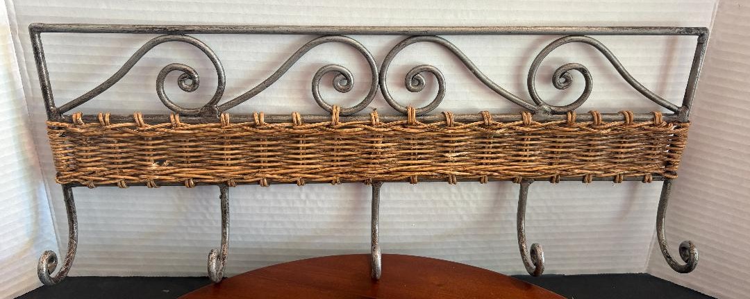 Welded metal hook hanger with decorative rattan weave for your towels, clothes, hats, keys, etc. Measures large 18″ wide and 7″ tall.