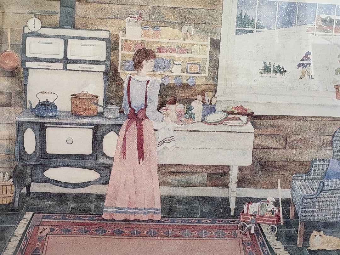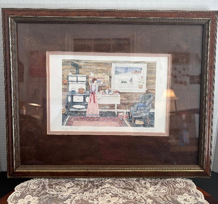 This exquisite, rare print by Helen Downing Hunter is a true gem for any art collector. The country kitchen winter scene in the window is a beautifully crafted lithograph that showcase the artist’s unique style of Americana. The print is signed by the artist and come in a medium size, measuring 15.5″ in length and 12.5″ in height. Perfect for those who appreciate the beauty of a county setting. This is a rare opportunity to own a piece of art history, and we are sure that this print will make a wonderful addition to any collection.