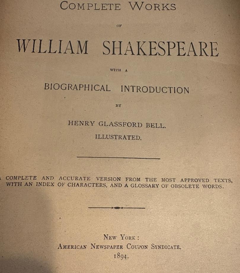 1894 Complete Works of William Shakespeare, Henry Glassford Bell, Illustrated