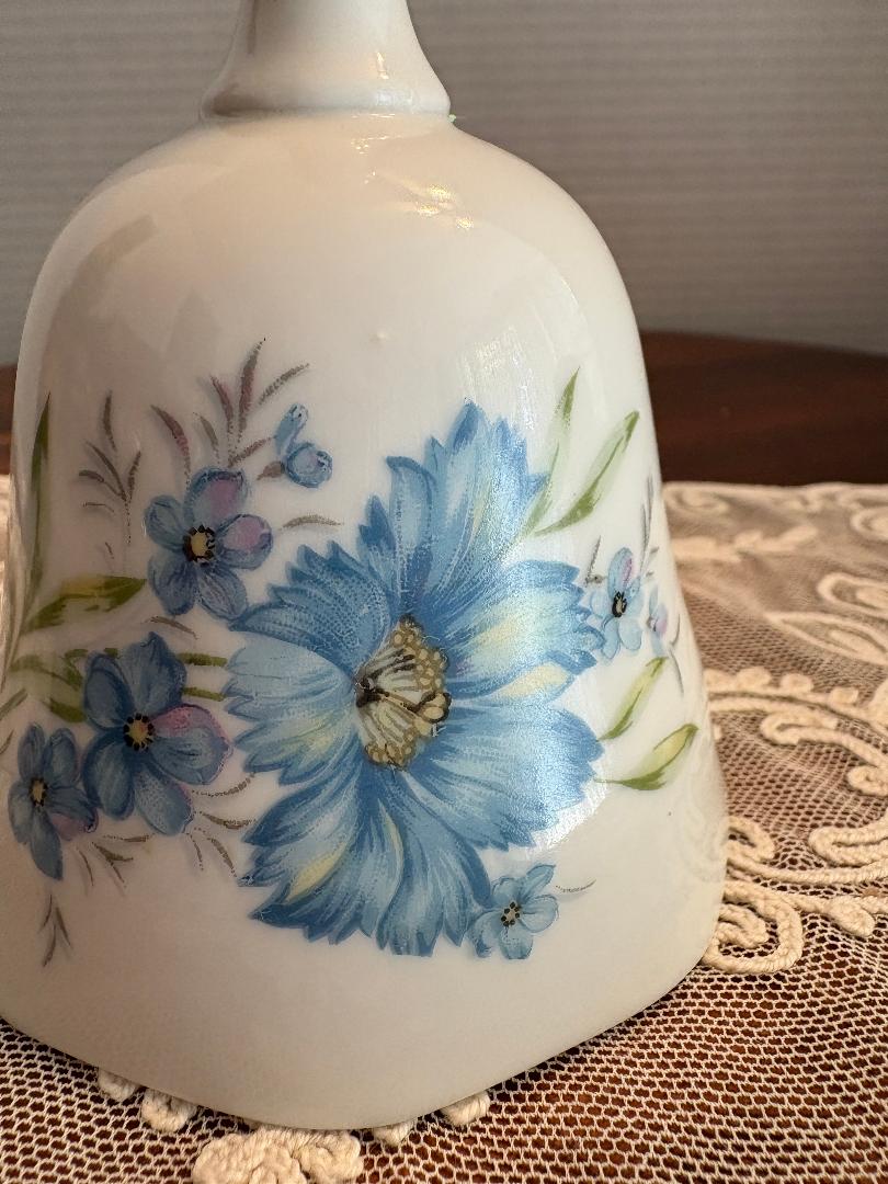 • Blue flowers hand painted on the front and back of the bell