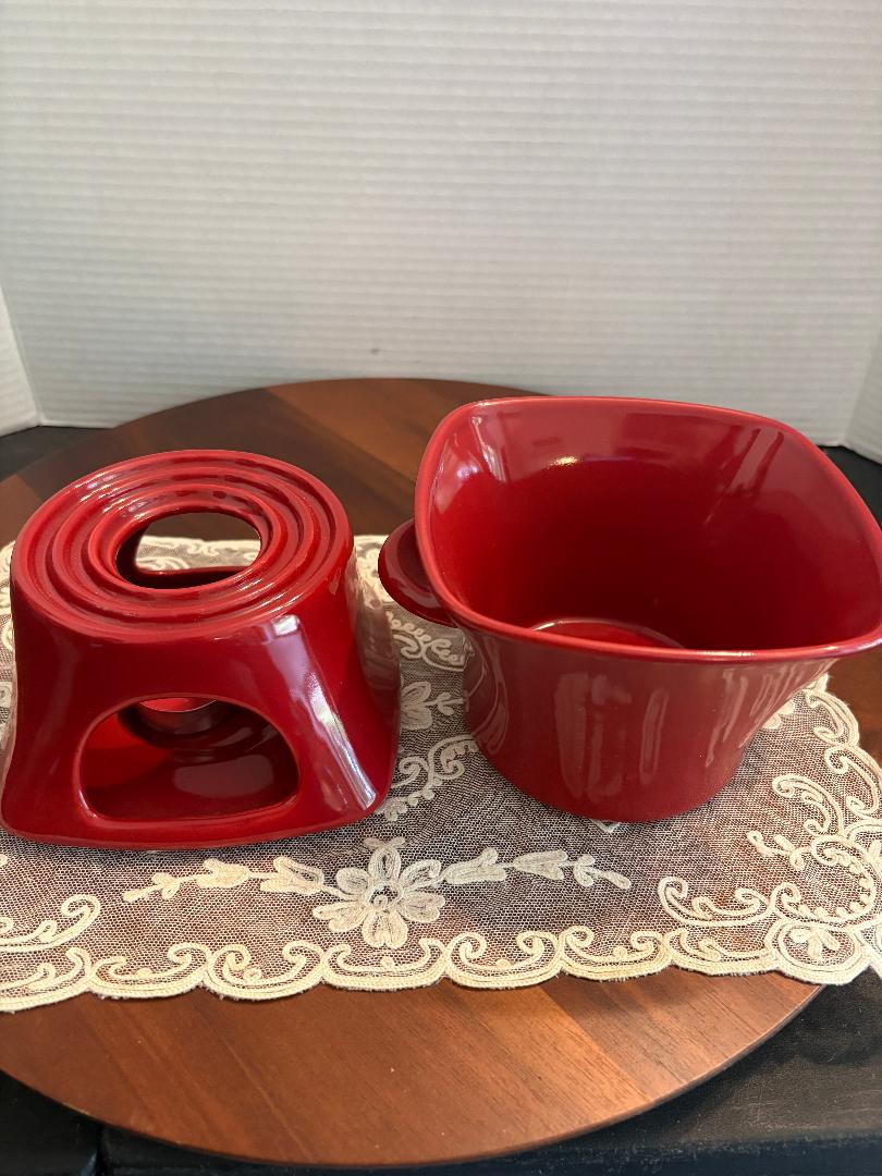 Be the first to review “Williams Sonoma Bon Jour Ceramic Fondue Pot Warmer Red 2 Piece Set Christmas”